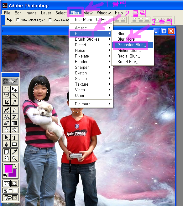(필터 ---> 흐리게 ---> 가우시안 블러를 클릭해줍니다.)